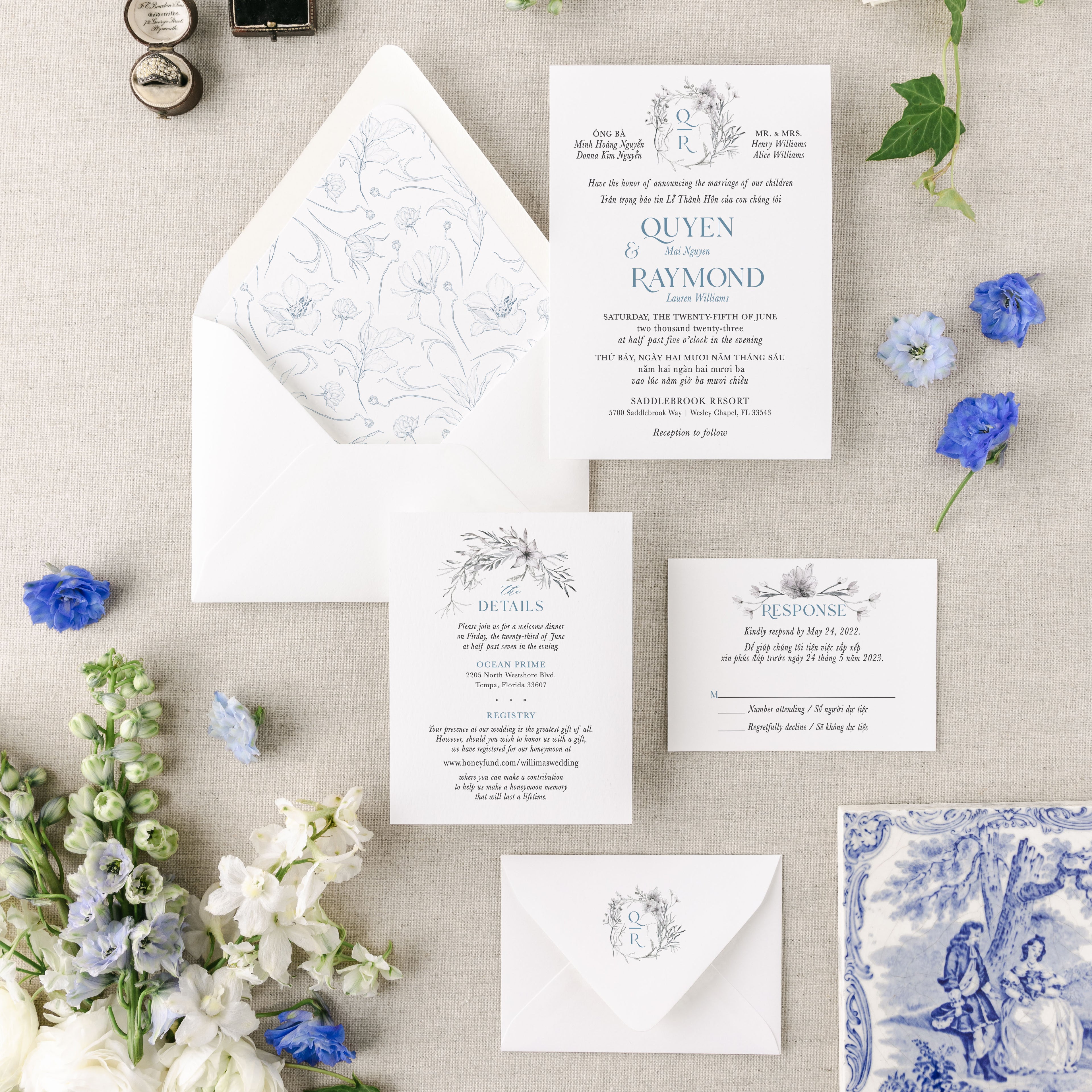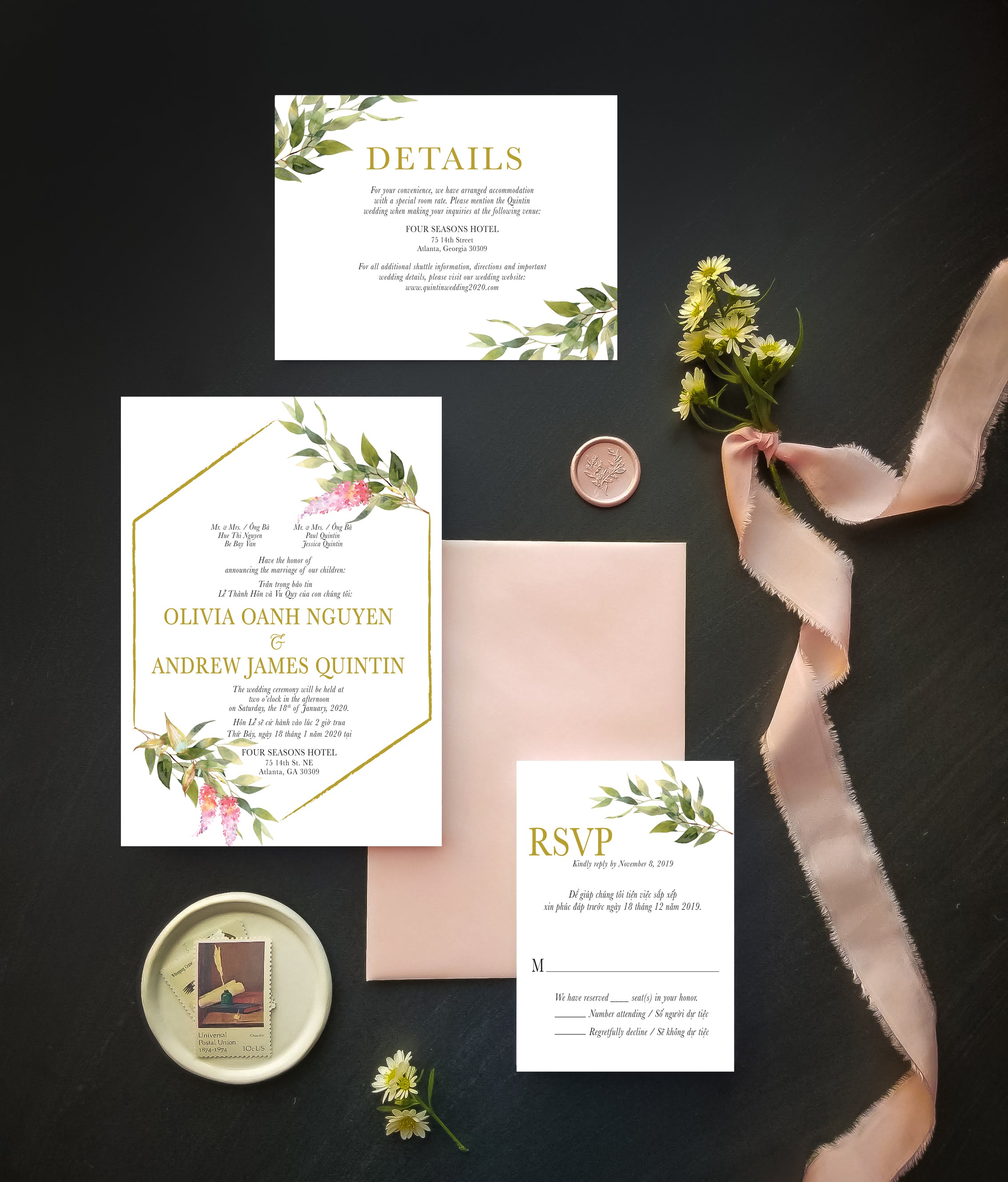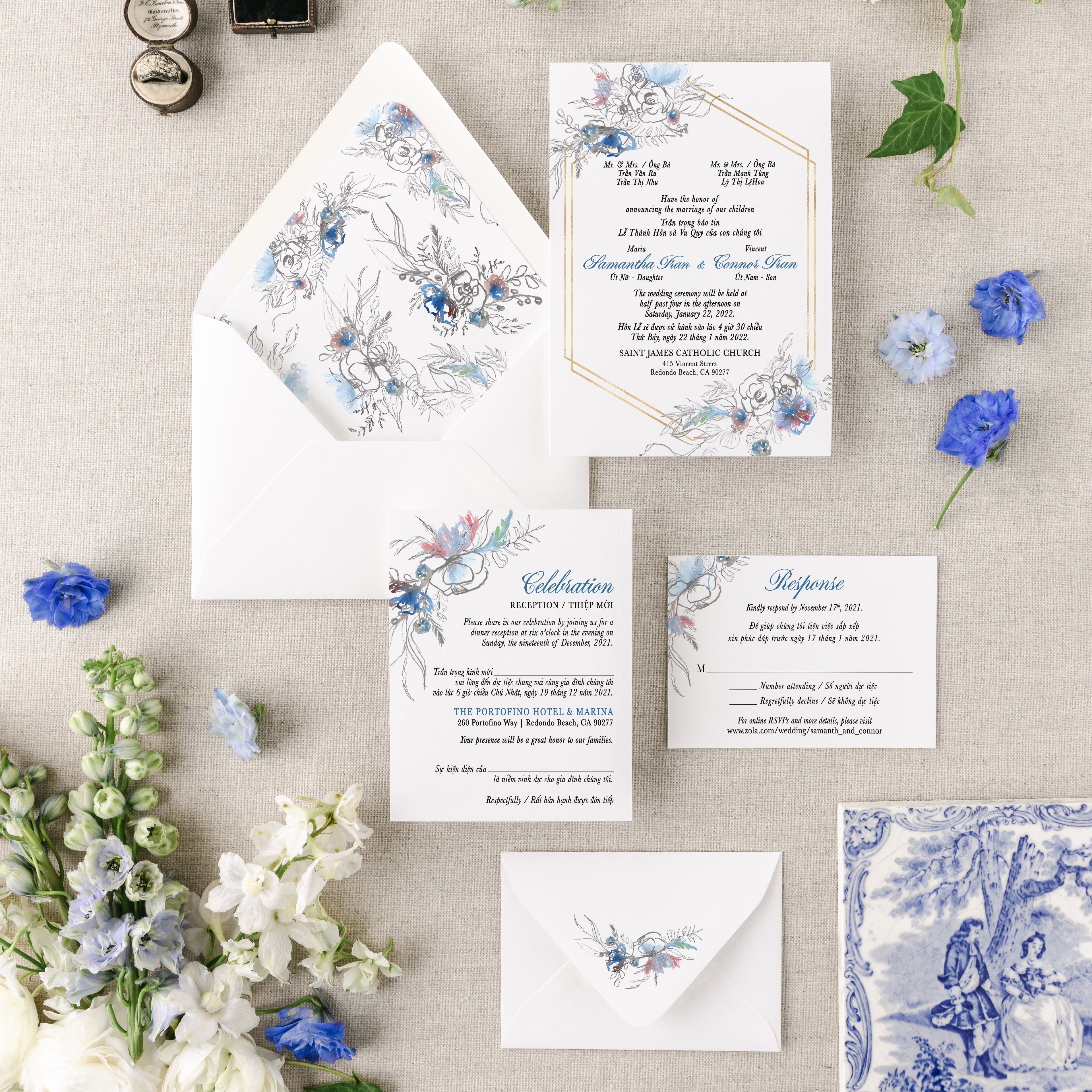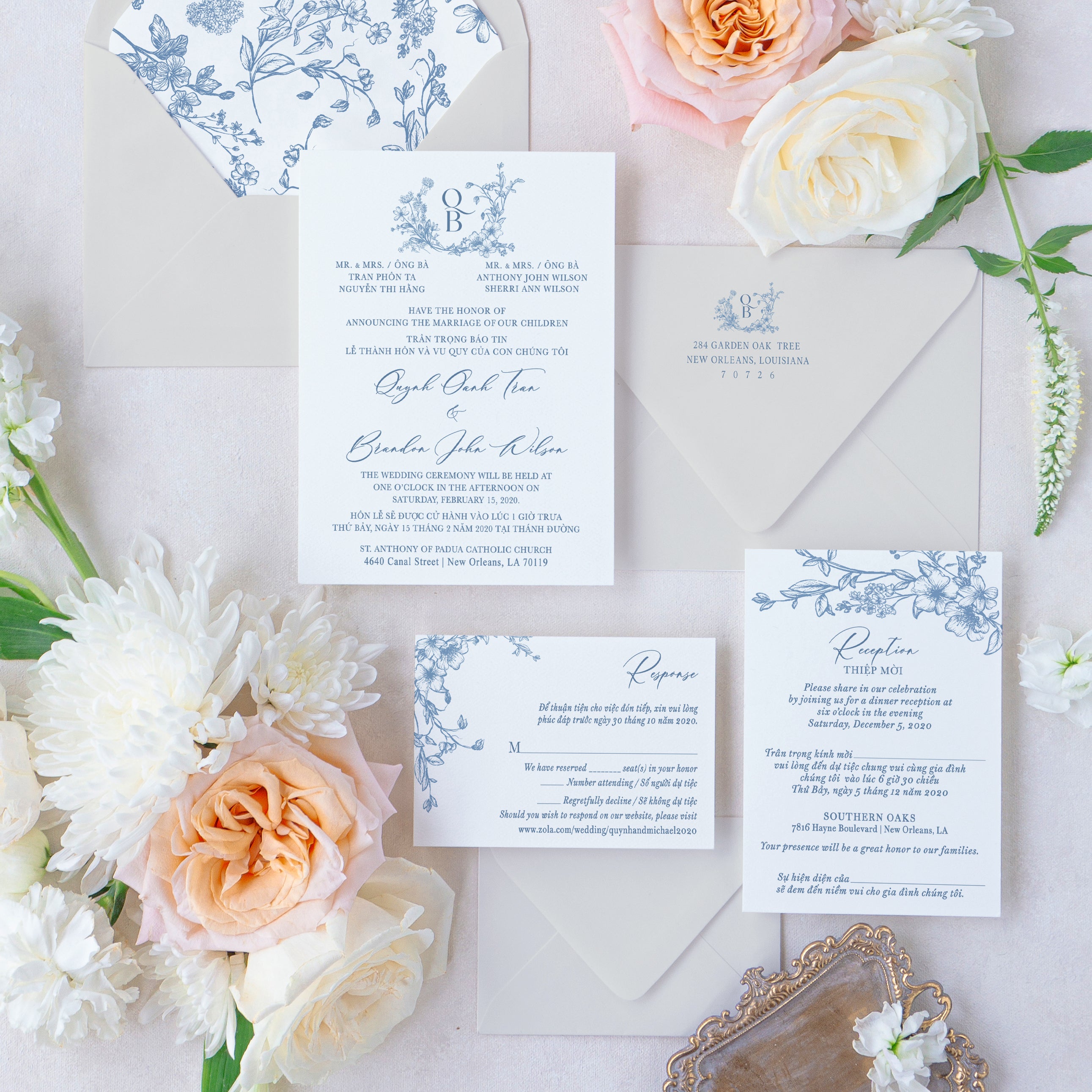 Celebrate love and heritage with elegance. These custom printed bilingual Vietnamese-English wedding...