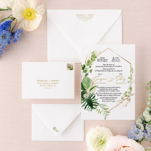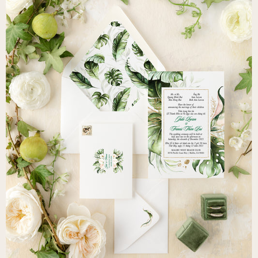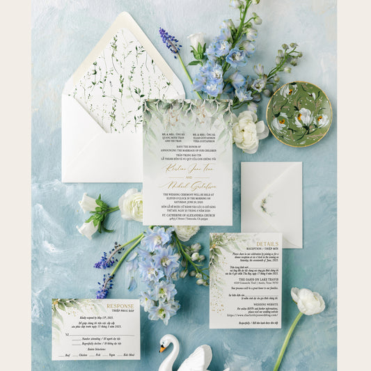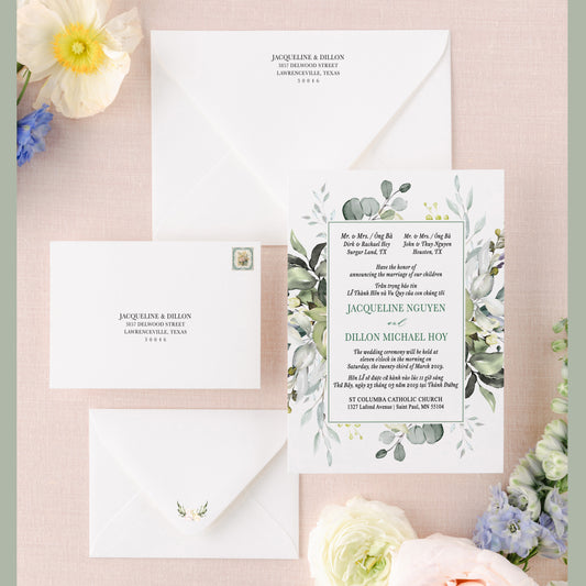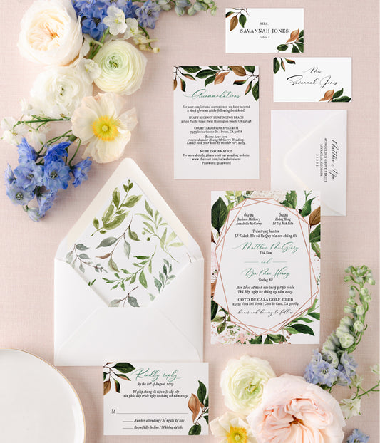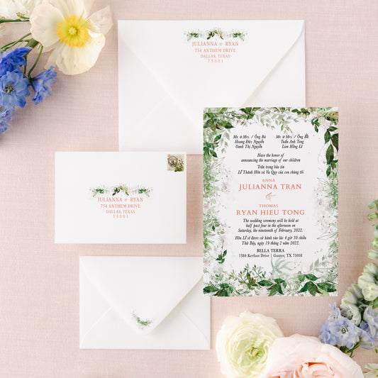 GRACE | Lush Greenery Bilingual Vietnamese Wedding Invitation Suites