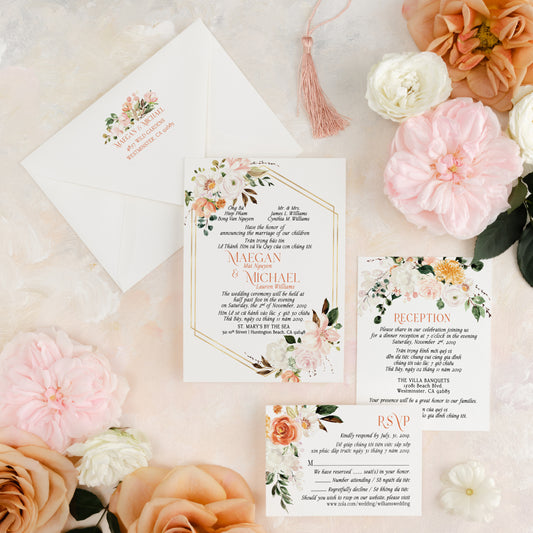ROSELYN | Customizable Bilingual Vietnamese Wedding Invitation Suites