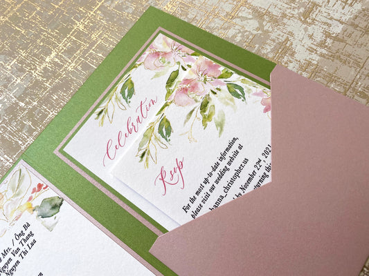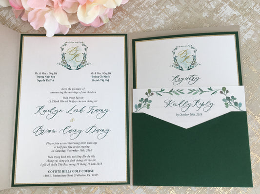KATELYN | Bilingual Vietnamese Tri-Fold Pocket Wedding Invitation Suites