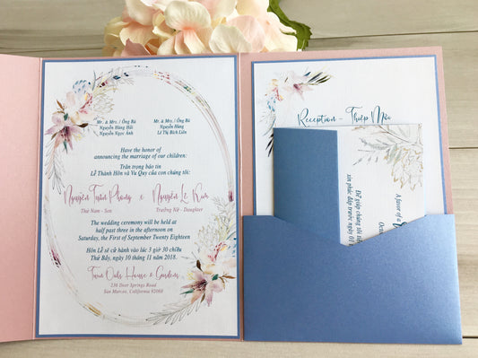 ROSIE | Bilingual Vietnamese Tri-Fold Pocket Wedding Invitation Suites