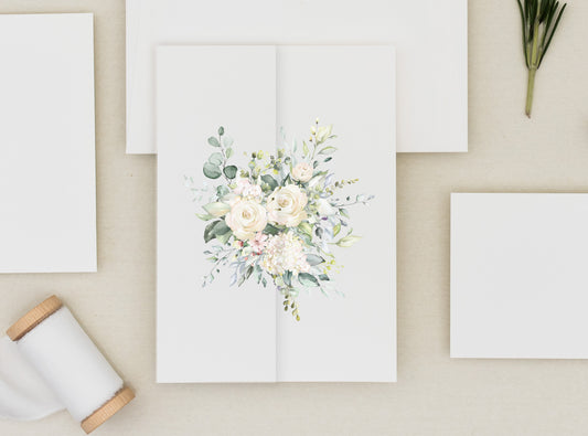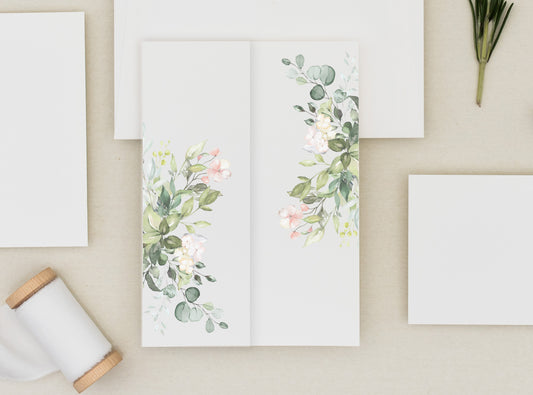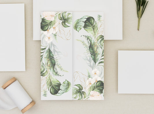These translucent vellum wraps keep your cards nice and tidy inside the envelope while still showing off your invitation design. Finish the look with wax seal, ribbon, or both for a truly sophisticated wedding invitation suite.