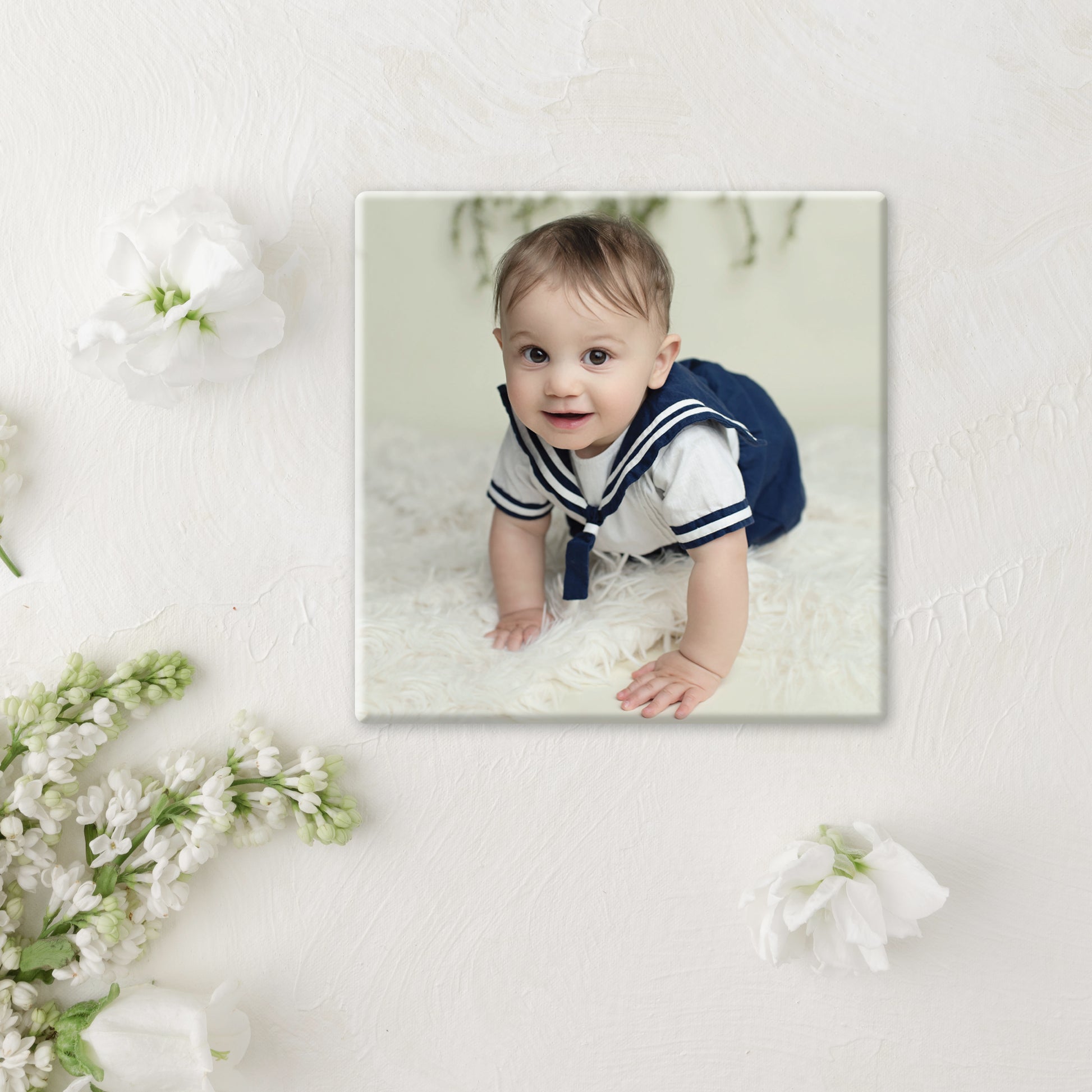 Celebrate your special moments with our 3" square custom photo magnets buttons, the perfect keepsake baby showers, birthdays and more!