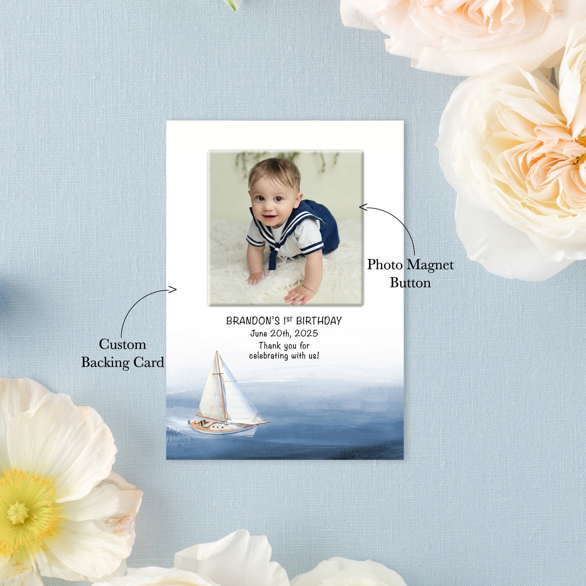 Nautical Birthday Photo Magnet Buttons