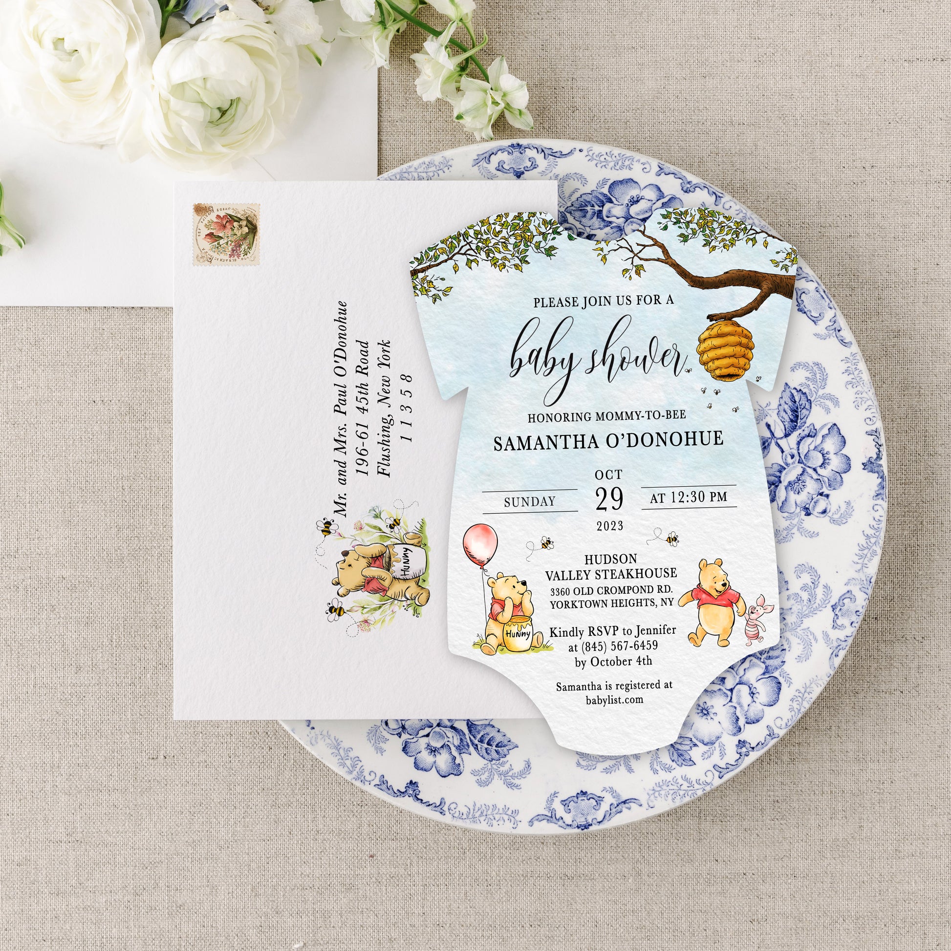 Winnie the Pooh Onesie Shape Baby Shower Invitation